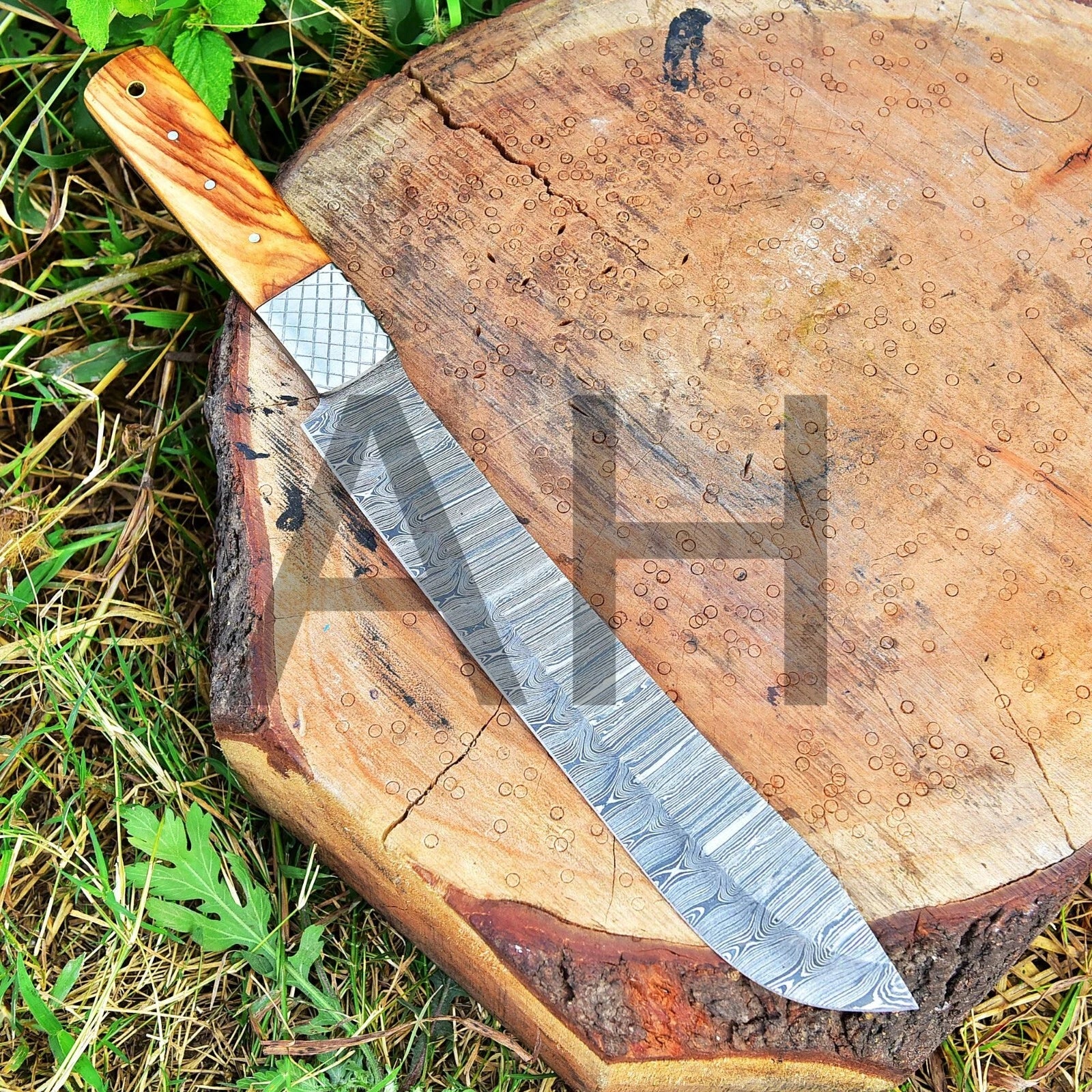 15" Handmade Damascus Steel Brisket & Butcher Chef Knife – Wood Handle with Leather Sheath 2373
