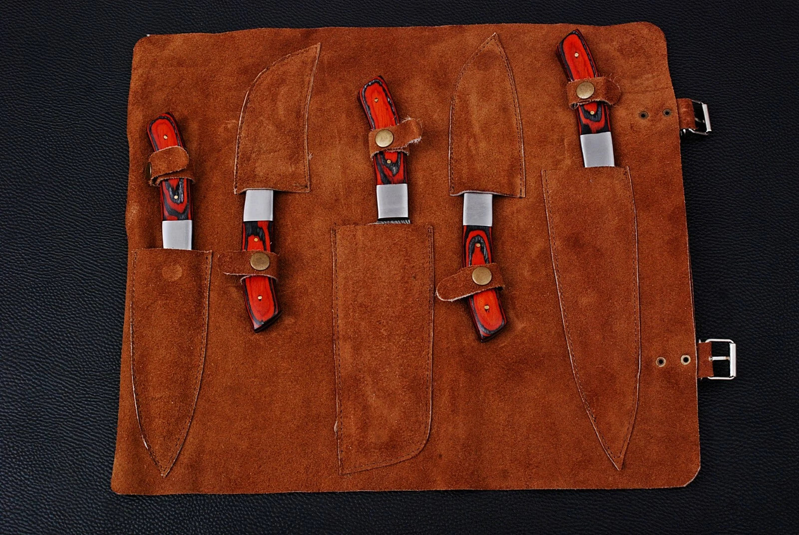 5 HAND FORGED DAMASCUS STEEL CHEF KITCHEN KNIFE SET W/WOOD HANDLE