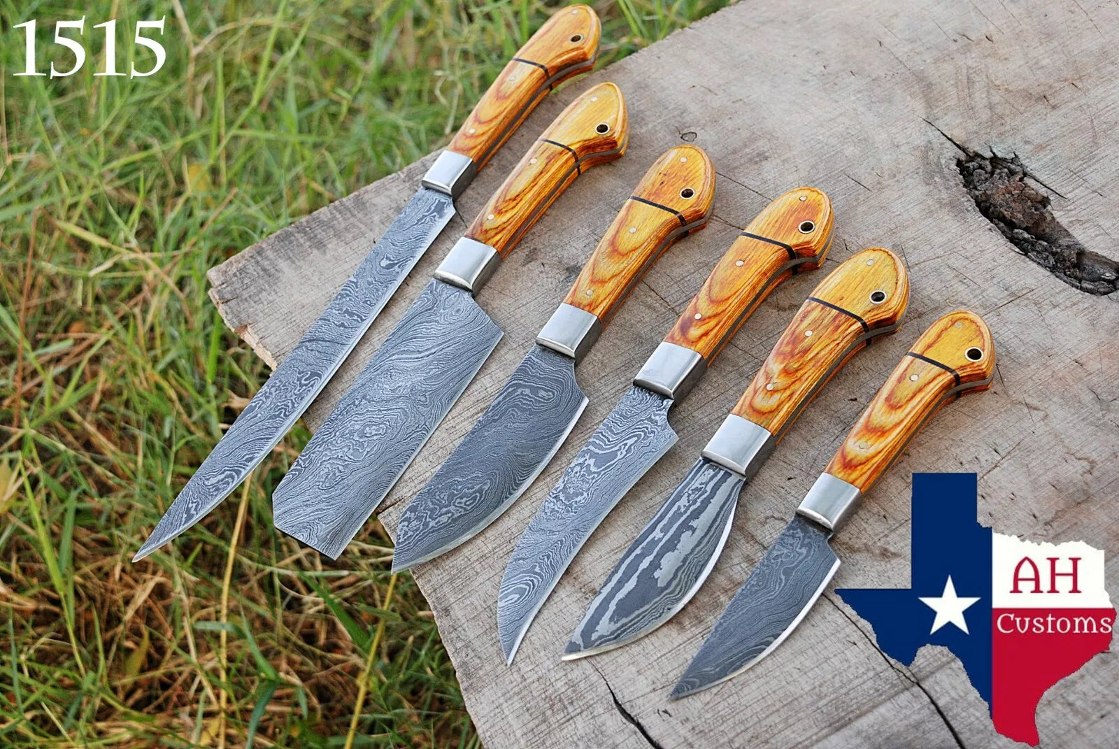 6 HAND FORGED DAMASCUS STEEL CHEF KITCHEN KNIFE SET W/STAIN WOOD HANDLE