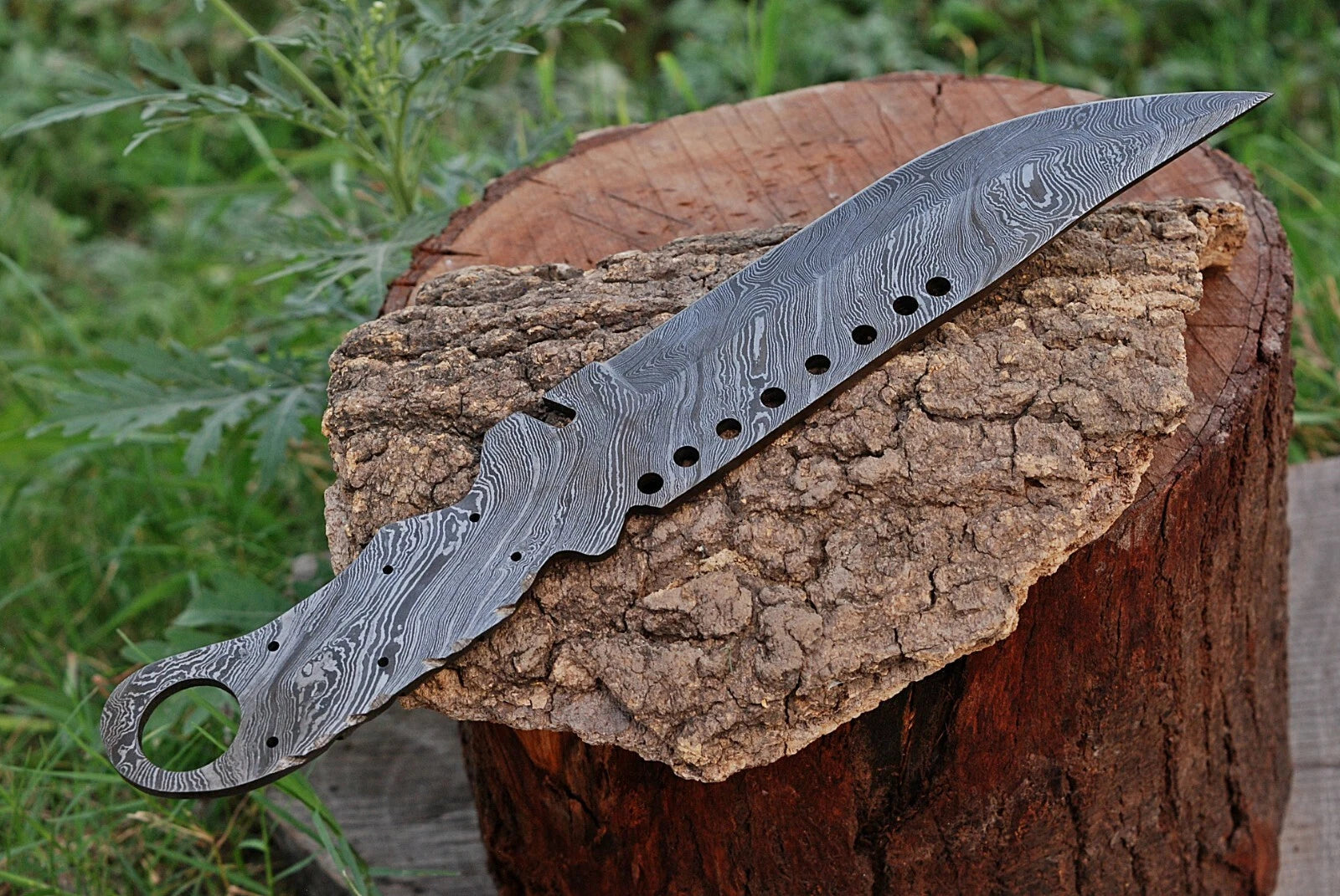 CUSTOM HAND FORGED DAMASCUS STEEL BLANK BLADE HUNTING KNIFE