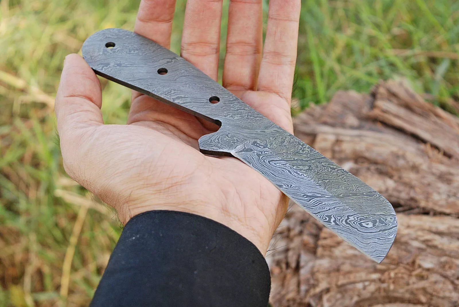 CUSTOM HAND FORGED DAMASCUS STEEL HUNTING BLANK BLADE KNIFE