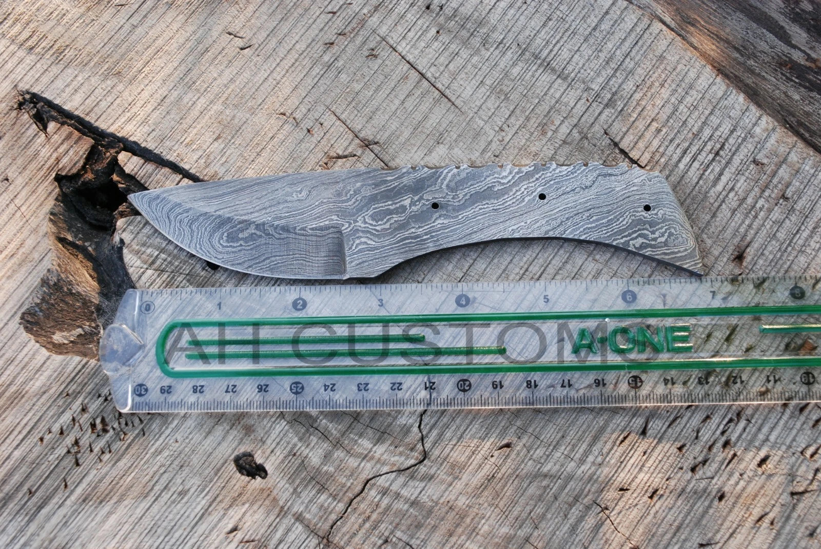 HAND FORGED DAMASCUS STEEL HUNTING BLANK BLADE KNIFE FULL TANG