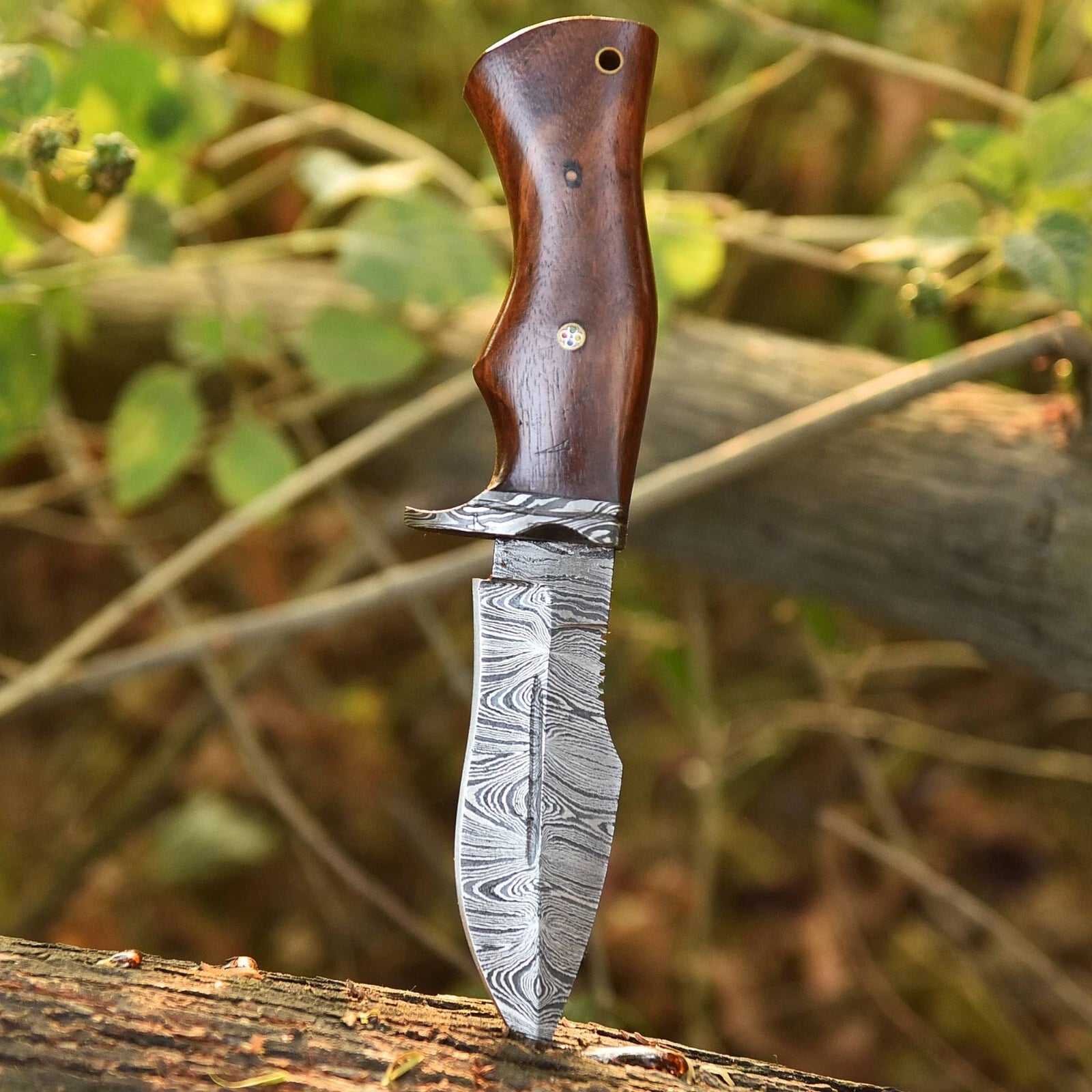 Custom Handmade Damascus Steel Bowie Hunting Knife Wood Handle W/ Sheath