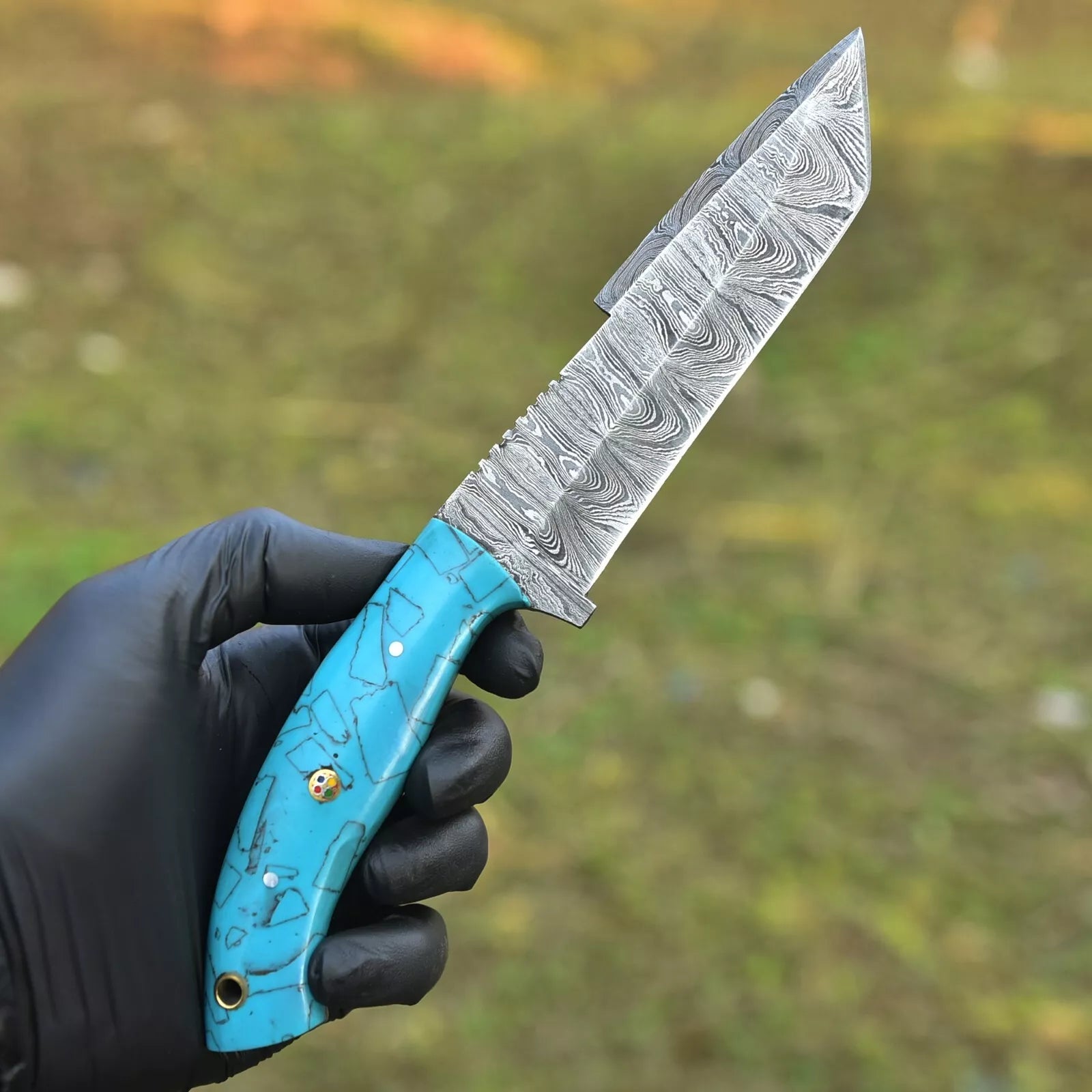 Damascus tanto Hunting Knife Custom Hand Made - Hand Forged Damascus Steel Blade