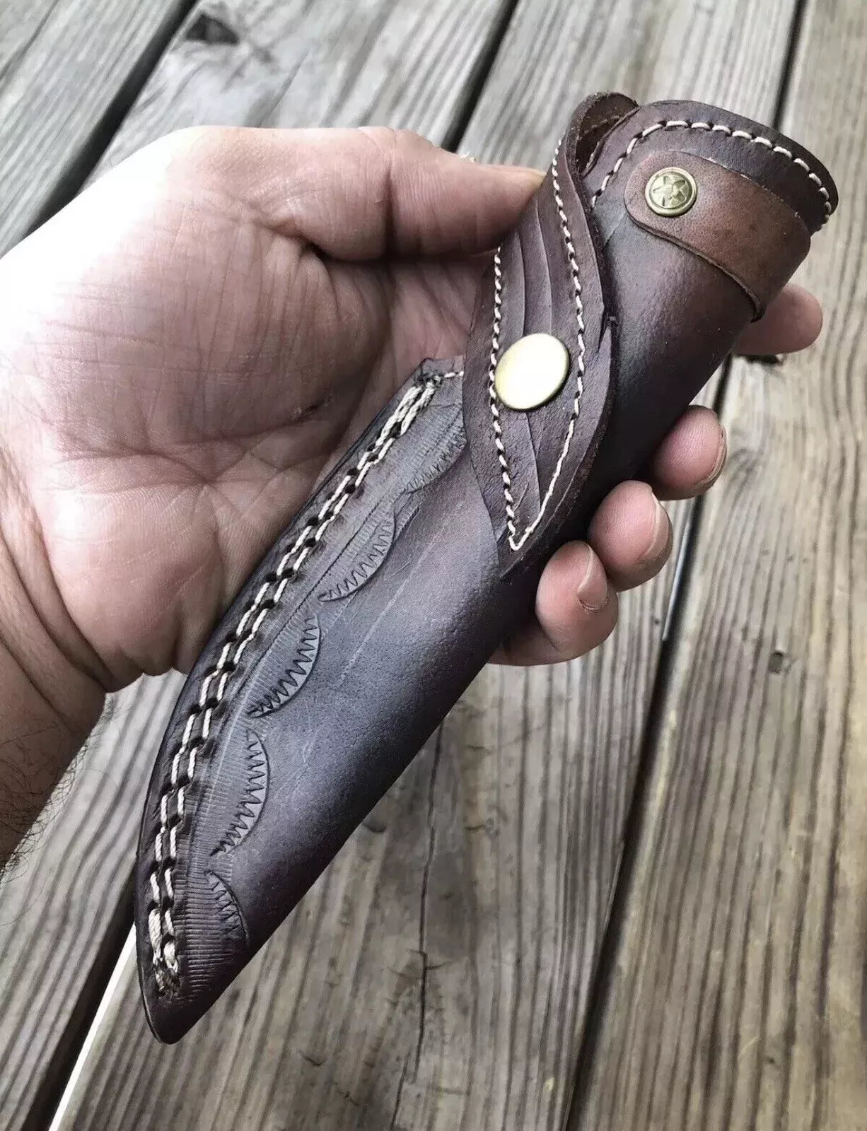 GENUINE LEATHER ENGRAVED CUSTOM HANDMADE SHEATH FOR FIXED BLADE KNIFE / HOLSTER