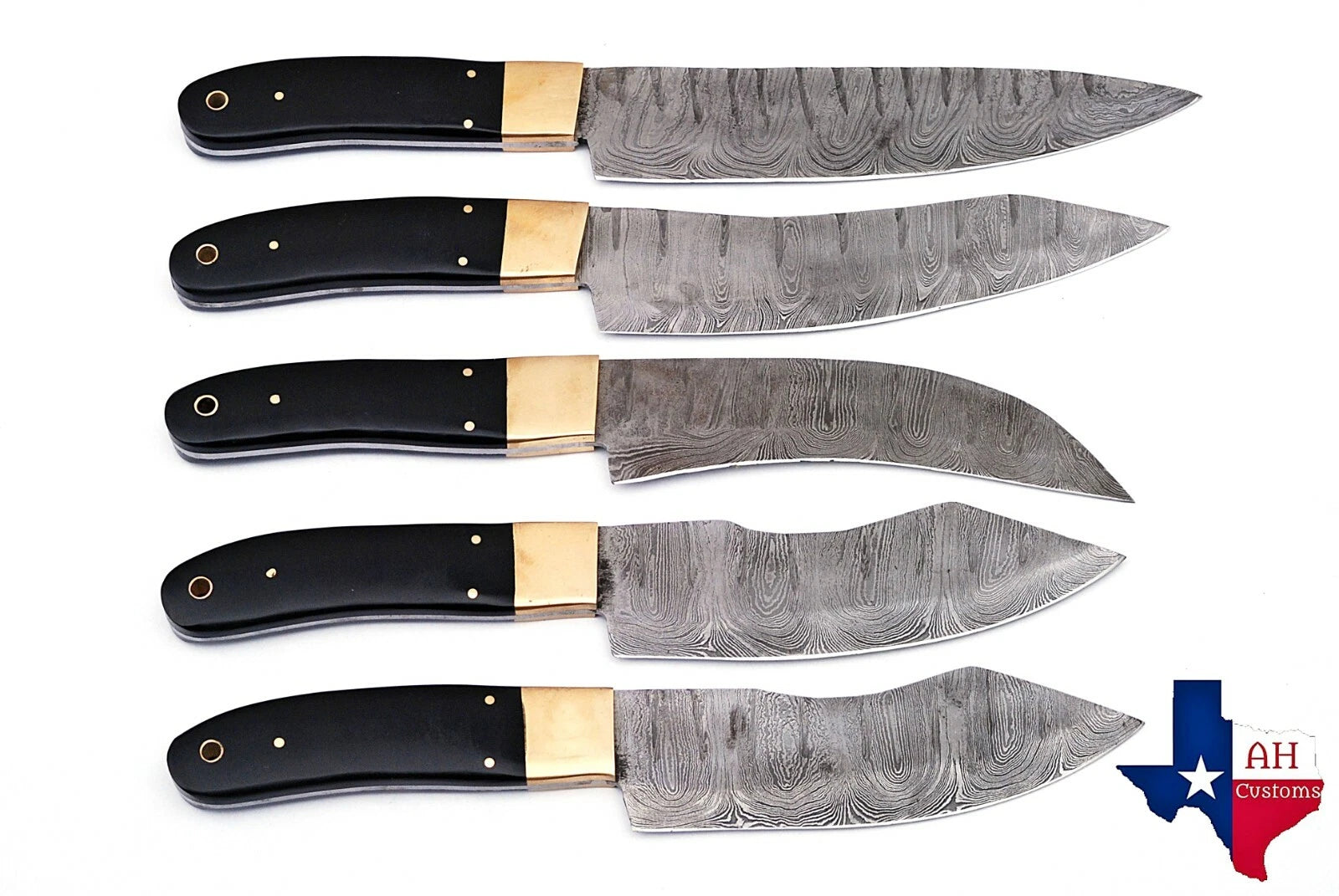 HAND FORGED DAMASCUS STEEL CHEF KITCHEN KNIFE SET WITH HORN HANDLE