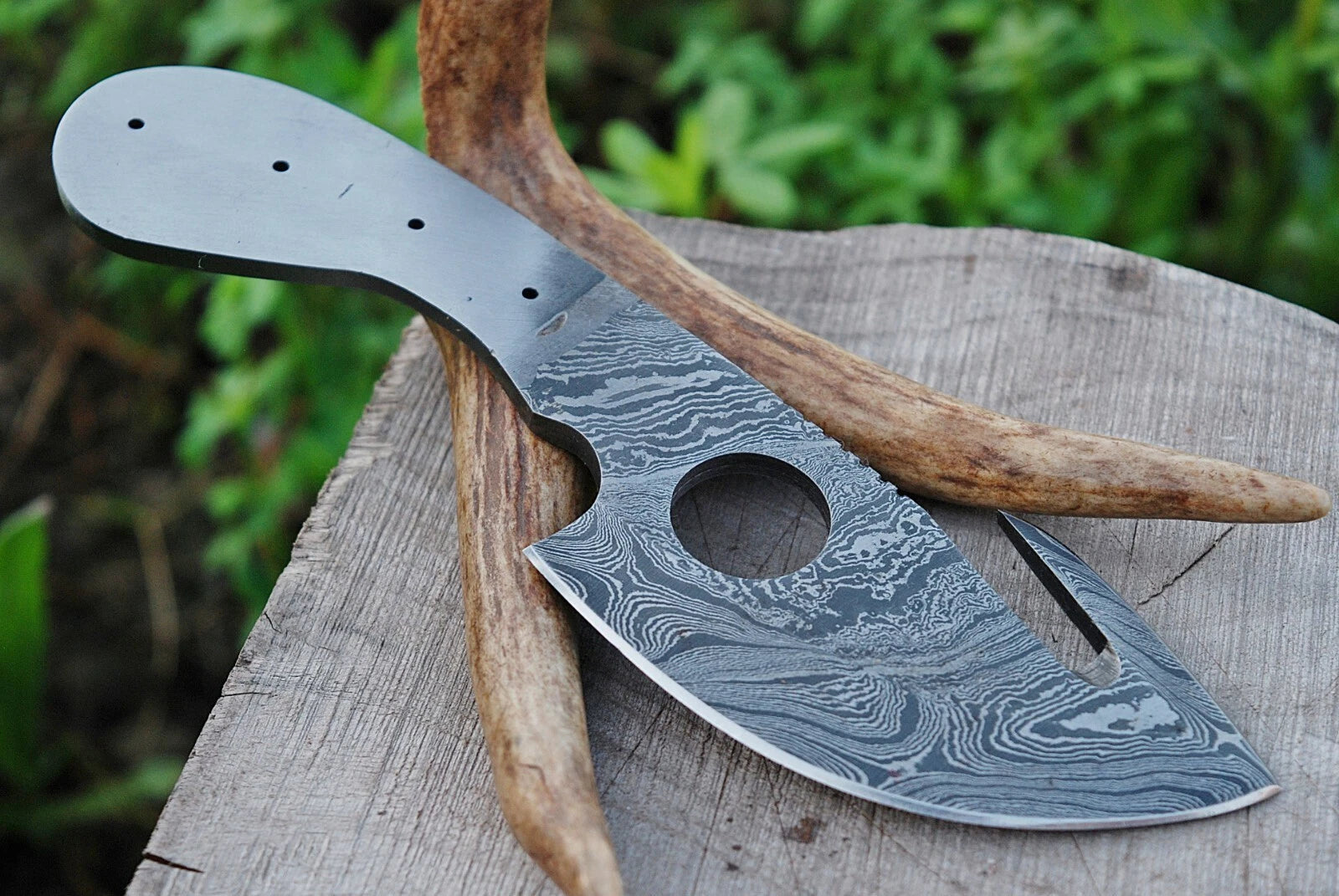 HAND FORGED GUTHOOK DAMASCUS SKINNER KNIFE BLANK BLADE MAKE YOUR OWN HANDLE