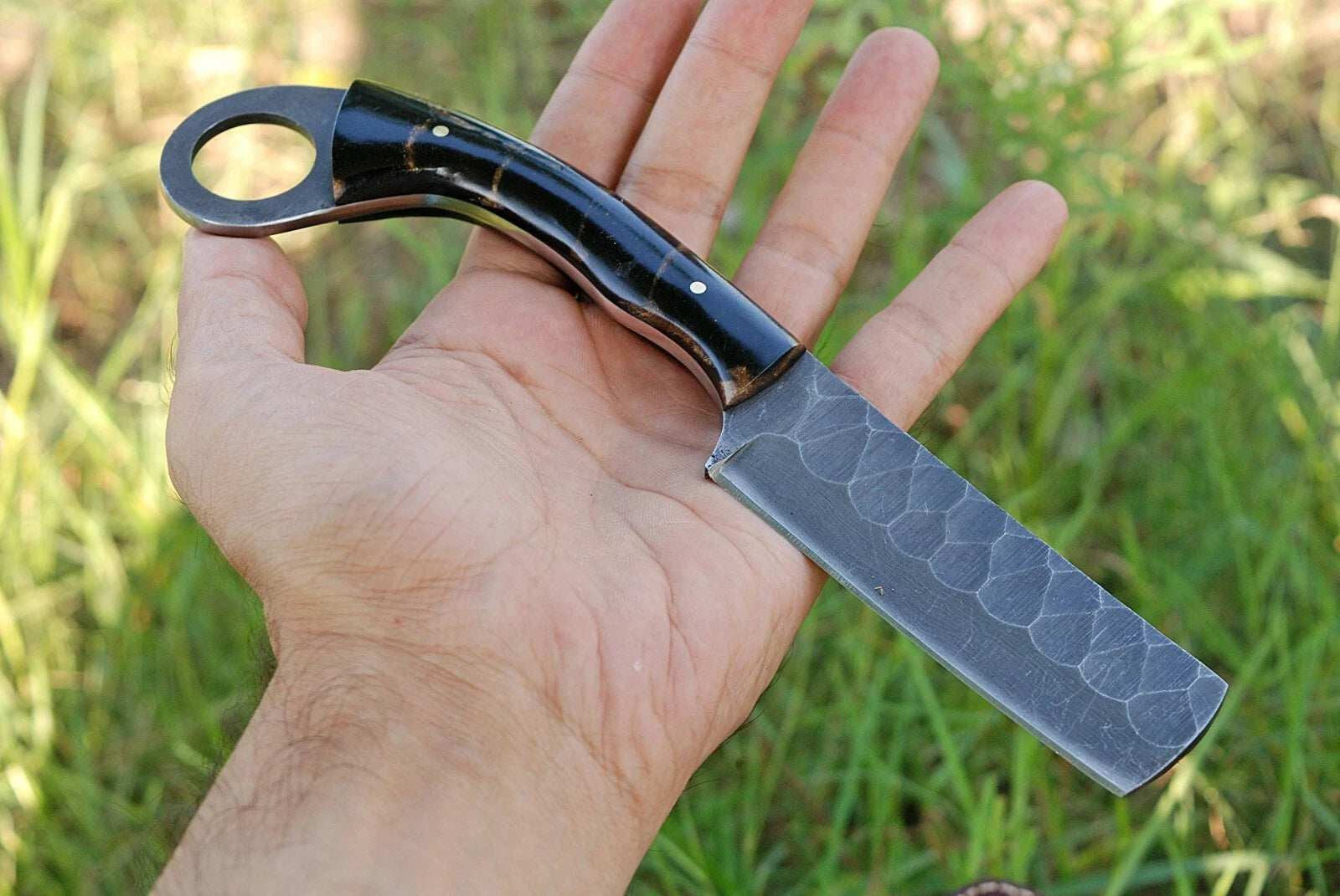 HAND FORGED RAIL ROAD STEEL BULL CUTTER KNIFE & RISEN HANDLE