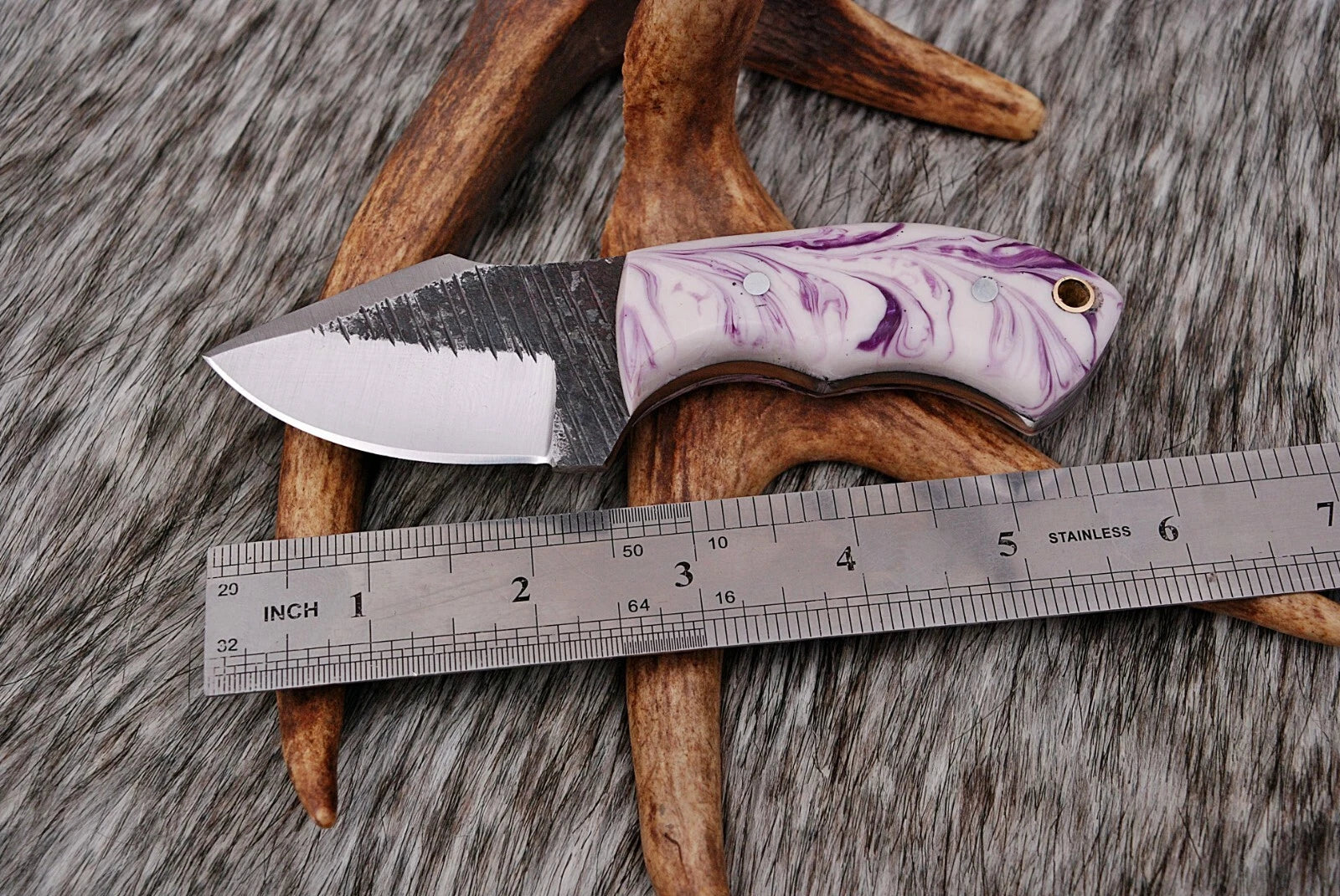 HAND FORGED RAILROAD SPIKE CARBON STEEL KNIFE &RISEN HANDLE AH DAMASCUS