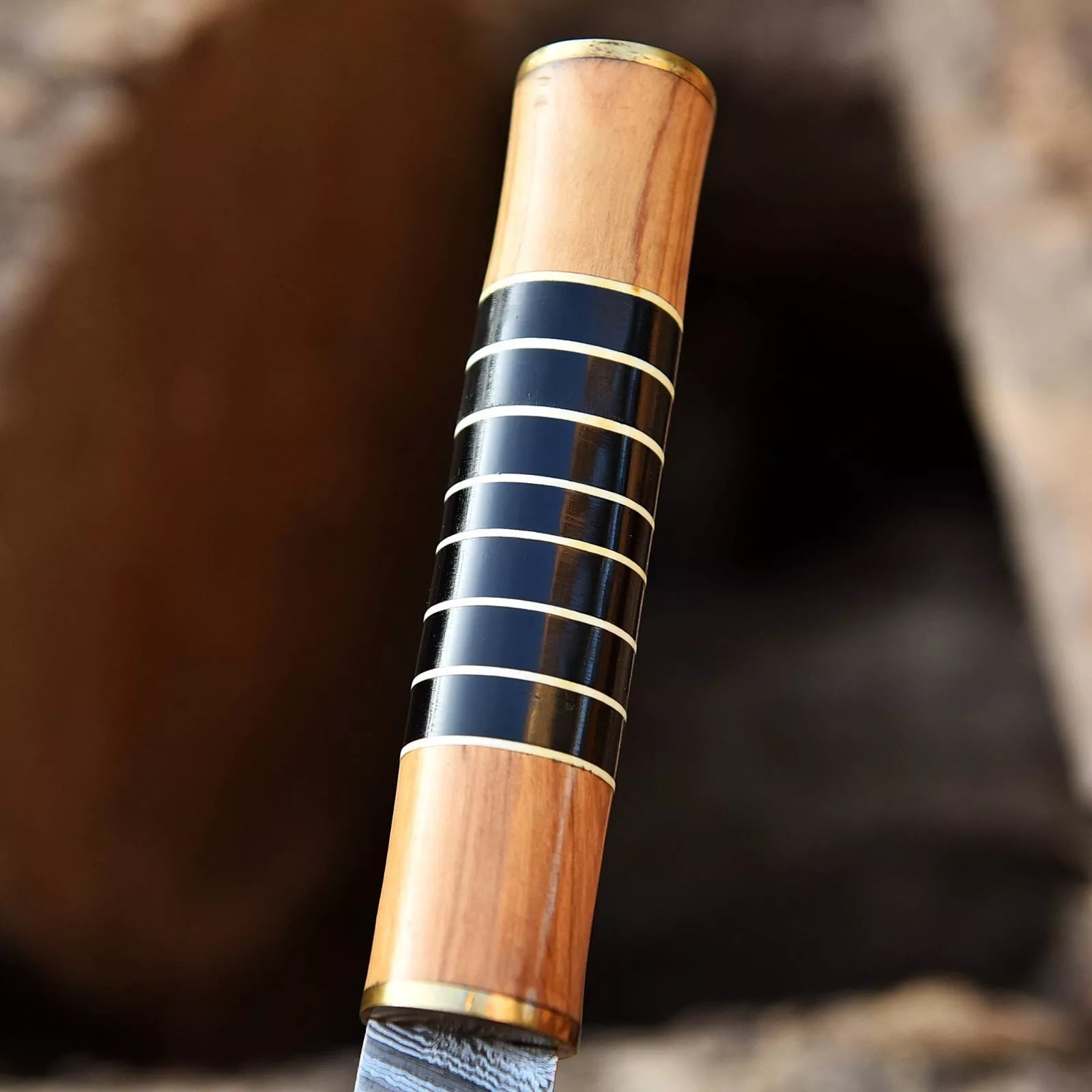 Blade of this knife has a nice file work and is made of 512 layers of stainless steel and high carbon steel with hardness 55-60 HRC . This robust knife is lab tested under intense conditions,; the balance and shape of this knife ensures perfect grip.